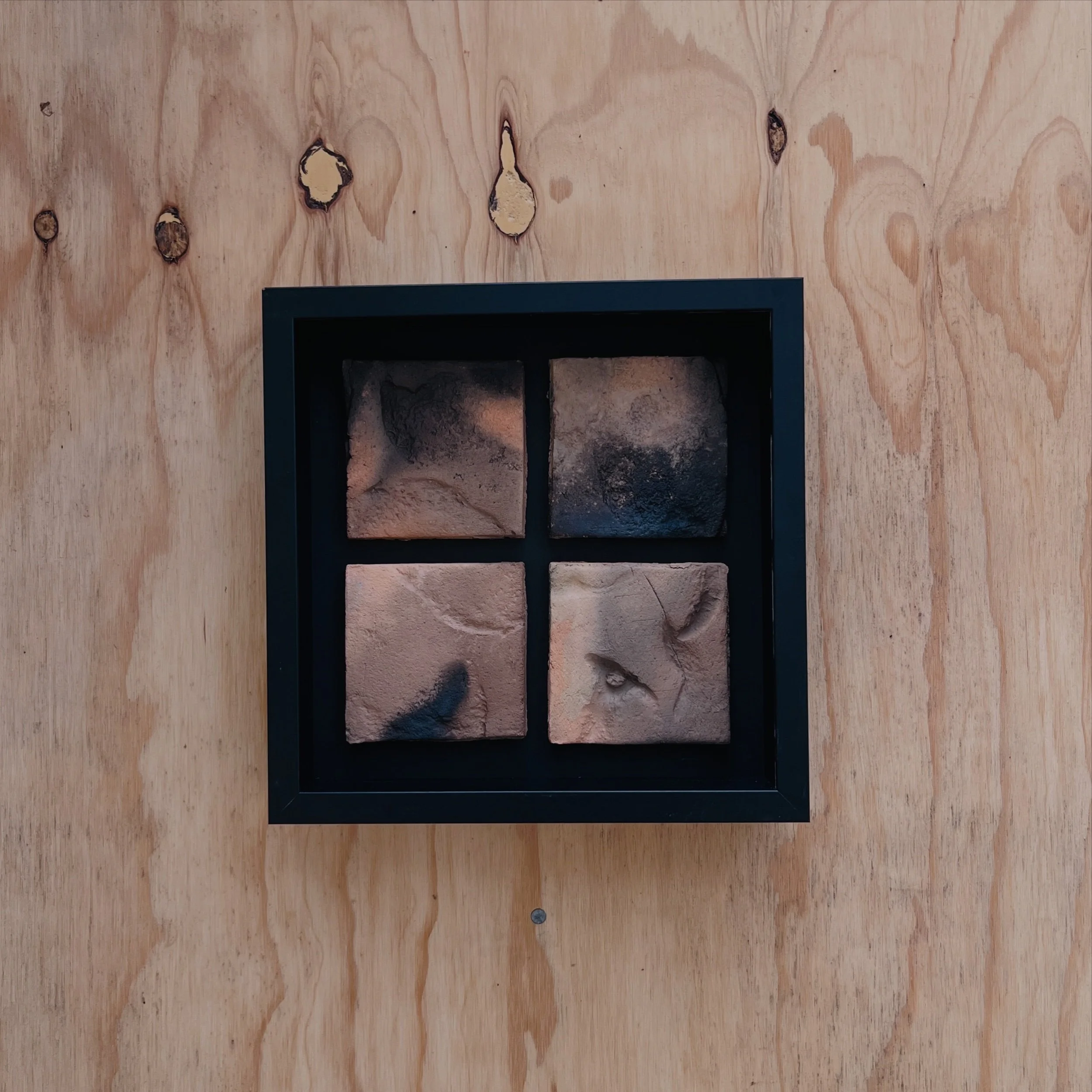 I explored this region at the beginning of this year and took clay stamp samples of the beautiful ridges and rock formations, creating impressions of this place. I then, over the span of about 6 months began creating tiles of these magnificent forms as part of a large tiled wall project for my home. Each tile was pit fired in my garden leaving a beautiful black lick of smoke to each one while also exposing the natural body of clay.